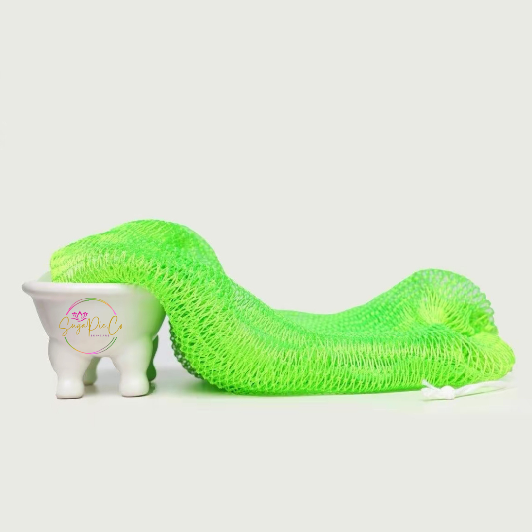 Apply body wash or bar soap to wet sponge and create a rich lather. Gently massage all over body to clean and exfoliate. Clean your back by stretching the sponge across your back. Rinse sponge and hang to air dry.